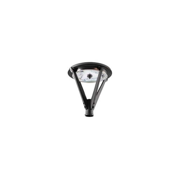 Farola ornamental construida totalmente de aluminio. Revestida con pintura en polvo termo convertible tipo poliéster de alta calidad. Cubierta de chapa de aluminio, que brinda mayor durabilidad. Difusor cónico fabricado en policarbonato transparente anti vandálico con resistencia al alto impacto y tratamiento UV.