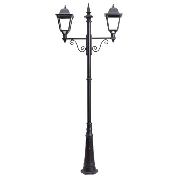 Base, nudo y farol fabricados en fundición de aluminio. Caño de acero estructural, 1.6 mm de espesor. Producto de excelente terminación. Apto intemperie.