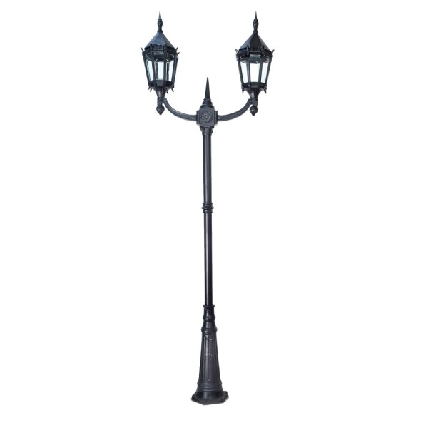 Base, nudo y farol fabricados en fundición de aluminio. Caño de acero estructural, 1.6 mm de espesor. Producto de excelente terminación. Apto intemperie.