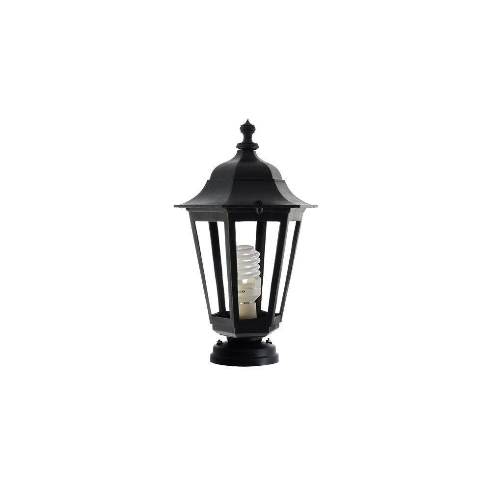 Farol hexagonal difusor vidrio con base para poste